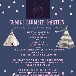 Got an event and not sure where to start? Get your dates booked in today for as little as 10% deposit (subject to package booked) we are booking up fast. we are available for the following events and many more. 🥳 Birthday Parties 💍 Engagement Parties 👰 Hen parties 🤵 Stag do's 💒 weddings 🤱 christenings 💰 charity events 👸 pageants 🤰 baby showers / gender reveals for more information please get in touch today or visit our website www.geminiweddingplanningservices.co.uk book before 30th June get 10% off